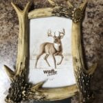 This rustic deer antler picture frame holds a 4×6 photo.
